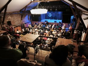 Pour l’occasion, Olivier Leborgne (parrain d’Amarrage !) était accompagné de Patrick Ridremont et Jean-Claude Dubiez : un trio qui n’a pas manqué de mettre le feu à la salle avec des improvisations complètement déjantées ! 😉